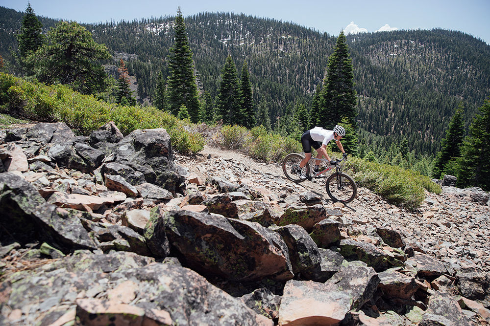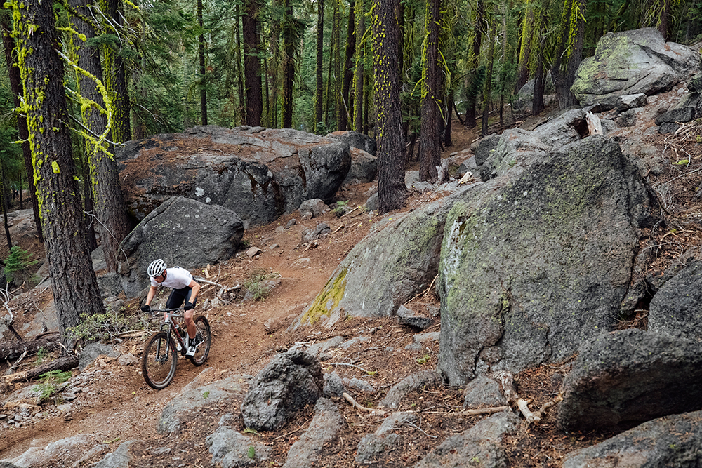 We monteren pedalen en laten spacers onder het stuur vandaan zakken. Banden pompen we op tot 1.3 bar. Iets meer druk dan normaal in de 2.3 inch brede banden. Testen doen we in de bergen. Op hoogte. Ook uw testredacteur van dienst kan wat extra rode bloedcellen wel gebruiken. We klimmen, en dalen natuurlijk ook. Eerst over ‘fireroad’ zoals ze dat in amerika mooi noemen. In Duitsland is het dan weer een schotterpad. Bij ons gewoon een saaie grindweg. Klinkt toch minder charmant.