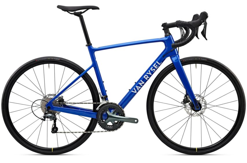 Wie de voorgaande fietsen bekijkt zou denken dat je met een budget van 1750 euro en de harde eis voor hydraulische schijfremmen vast zit aan een aluminium frame. Decathlon bewijst het tegendeel met huismerk Van Rysel. De NCR CF is voorzien van een prachtig koolstofvezel frame in carbon grey of electric blue. Om de fiets toch voor een scherpe prijs aan te kunnen bieden is gekozen voor een Tiagra-afmontage in combinatie met relatief zware Mavic Aksium wielen. Dat betekent ook dat het totale gewicht met 9 kg aan de hoge kant is voor een carbon racefiets (en zelfs iets zwaarder dan een aluminium fiets uit dit rijtje). Laten we het erop houden dat er nog ruimte is voor eenvoudige upgrades in een later stadium…