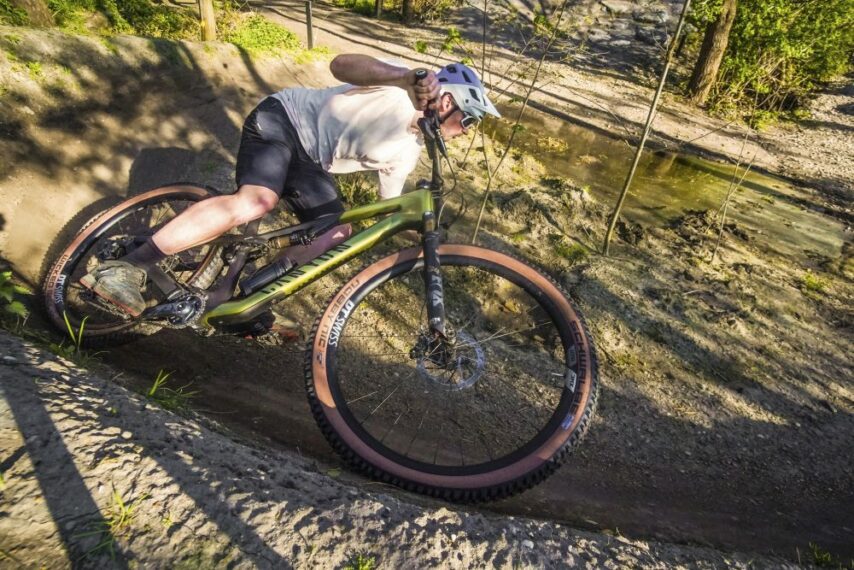 De veelzijdigheid van de fietsen testen we op de Nederlandse trails, een Duits bikepark en alles wat daar tussenin zit (lees: de Ardennen). Al snel ontdekken we de nodige verschillen. Beide fietsen lijken zo op het oog misschien op elkaar, maar in de praktijk zijn het twee totaal verschillende machines. De Canyon is licht, trapt prima omhoog en kan met een paar kleine aanpassingen in Nederland ook zonder problemen als crosscountry-fiets worden gebruikt. Door de banden te wisselen en een ander vlak stuur met diepere stuurpen te monteren, veranderen we de Neuron vrij eenvoudig in een soort Lux Trail. Ideaal!