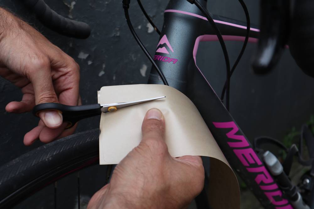 Bevestigen is übersimpel. Het deel waar de plakker komt even ontvetten, sticker er op en klaar is Clara. De plekken die het meest te lijden hebben zijn meestal je cranks (door je schoenen), balhoofdbuis (kabels) en chainstay (klapperende ketting). Wil je je fiets echt kras- en steenslagvrij houden, dan plak je ook nog stickers op je voorvork en de onderkant van de schuine buis. Mag er echt helemaal geen krasje op komen, dan moet je lekker op binnen op Zwift gaan fietsen. Kom op, het is wel een gebruiksartikel hè.