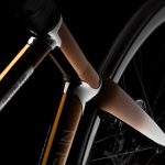 De Portofino Evo Anniversario van Officina Battaglin heeft voor dit jaar namelijk een geïntegreerde cockpit met volledig verborgen kabelgeleiding in combinatie met oversized lugs. Het frame is van oversized Columbus Spirit HSS-buizen met taps toelopende balhoofdbuis. En daarin draait een speciale full carbon vork, volledig gefabriceerd in Italië. De rem- en derailleurkabels lopen door de speciale D-vormige stuurbuis. Eigenlijk net als bij een carbon racer.