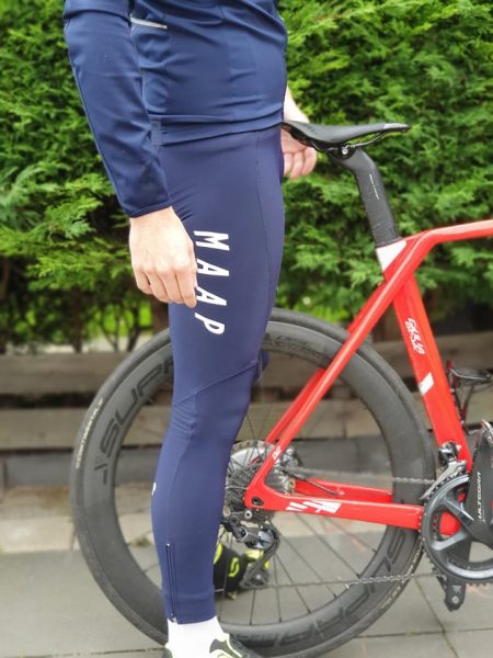 Onder verschillende weersomstandigheden maak ik met heel veel plezier gebruik van de MAAP-kleding. Dat is op zich niet gek, want de naam ‘M-Flag All Weather’ doet al vermoeden dat de kleding een manusje van alles is. In de kou of bij kortebroektwijfel: ik neig toch altijd weer naar dat blauwe setje. Wij van Fiets hebben wel vaker kleding van MAAP getest. Ik heb vóór deze test nog nooit met iets van MAAP gereden, dus ging ik er blanco in. Ruim een jaar lang mocht ik ervaren wat er nou zo speciaal is aan de kleding van het van oorsprong Australische bedrijf. MAAP werd in 2014 in Melbourne opgericht en heeft zich de laatste jaren stevig ontwikkeld. In Europa heb je er misschien wel Tom Pidcock mee zien crossen. Het Britse crosstalent is een van de renners die door MAAP van kleding wordt voorzien.
