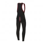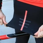 Deze Fiandre bibtight zit vol design’dingetjes’. Zo hebben de bretels een rode omranding, een kleur die terugkomt op de binnenkant van de enkelritsen en de ‘spatlap’ (later meer hierover) achterop. Qua uiterlijk een heel geslaagd ontwerp.