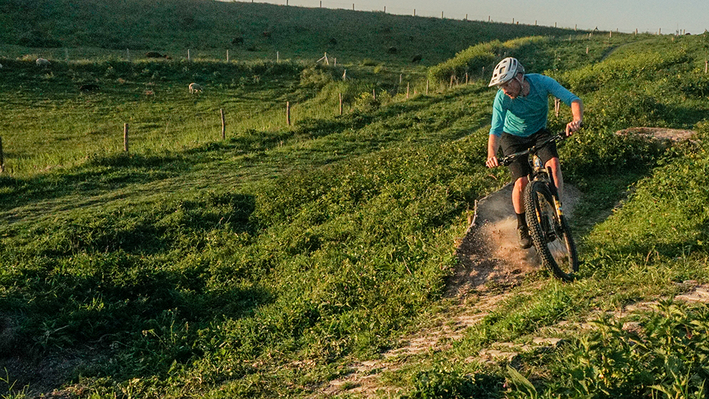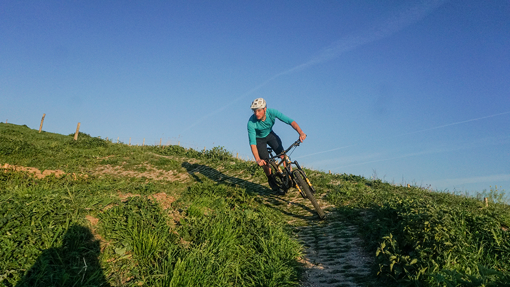 Wederom is het belangrijk eerst het pad te scannen. Een switchback zoals in dit voorbeeld is op verschillende manieren te nemen. Bijvoorbeeld door je gewicht naar voren te verplaatsen en het achterwiel in de lucht om te zetten. Deze ‘next level’ technieken besparen we je. We houden vandaag de voetjes aan de grond.