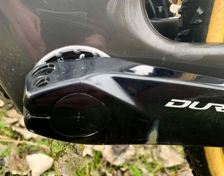 Jumbo-Visma en dus ook Wout rijdt met Dura Ace Di2. Of beter gezegd: reed. Een paar dagen later kreeg Wout een R5-CX met 12-speed Dura-Ace. Deze is nog 11-speed. Met de ‘junction’ in de stuurbocht, accu in de zadelpen. 172,5 mm crankstel met 46/36 kettingbladen – die zijn ‘standaard’ Dura Ace, maar niet zomaar los te koop. Marianne rijdt met 44/36. De fiets die wij konden fotograferen – nummer ‘4’ – heeft een Powermeter, daarom is de linkerzijde van de crank ook dicht.