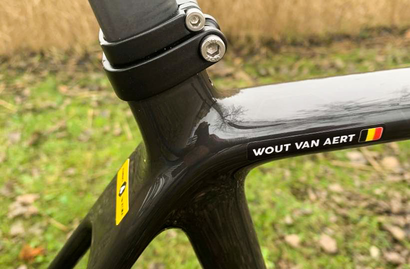 Uiteraard is het frame van carbon. Er zullen vier maten komen: de 51, 54, 56 en 58. Vos rijdt op een 51, Wout op een 58.  De basis is duidelijk de straatversie, de dit seizoen geïntroduceerde R5. Het is geen gravelracer; daar is de Aspero voor. Zowel voor Wout als Marianne zijn er zes stuks. Een staat altijd thuis bij de renner (M/V), de andere bij de Service Course in Den Bosch. Er is een pool aan mecaniciens; elke wedstrijd gaan er twee mee. De vaste mekanieker van Wout is Tony Arts, die van Marianne Marcel van Rossum.