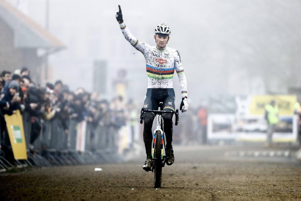 Bij de elite heren kwam Van der Poel weer eens solo over de finish. Wout Van Aert begint de juiste vorm te krijgen en finishte als tweede. De Belg van Jumbo-Visma is op de weg terug na zijn horror-blessure die hij opliep in de Tour de France van vorig jaar. Op de derde plek vinden we, verrassend, Jens Adams terug. Hij hield Iserbyt netjes achter zich