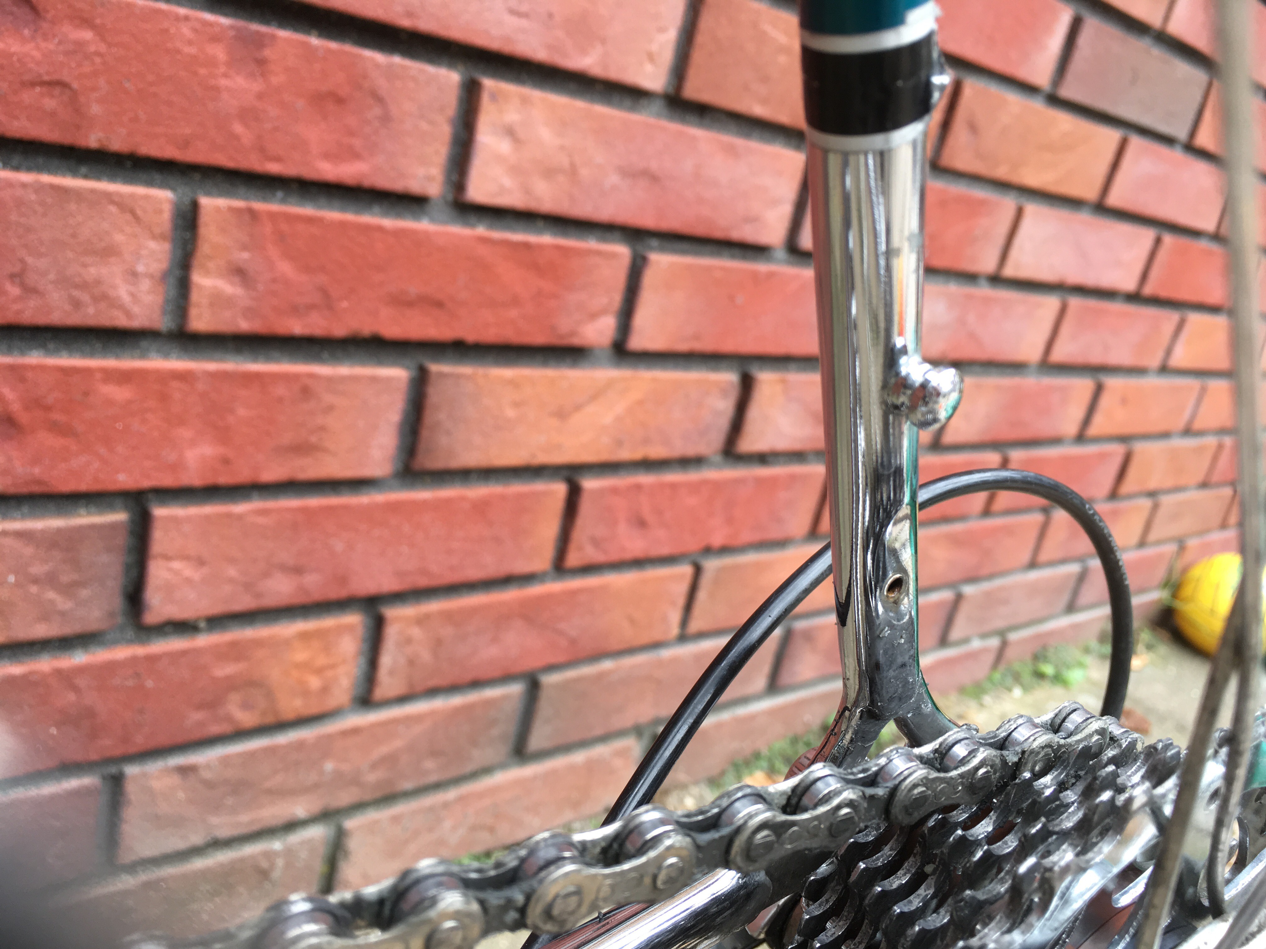 En wat vind jij van de combinatie van dit frame met een 9-speed Campa Mirage? Is het frame uberhaupt geschikt voor een 9-speed, gezien het schampen van de ketting tegen het frame als het op het kleinste kransje ligt? En zou een fietsenmaker destijds een Special frame van een instapgroep als Mirage kunnen hebben voorzien?