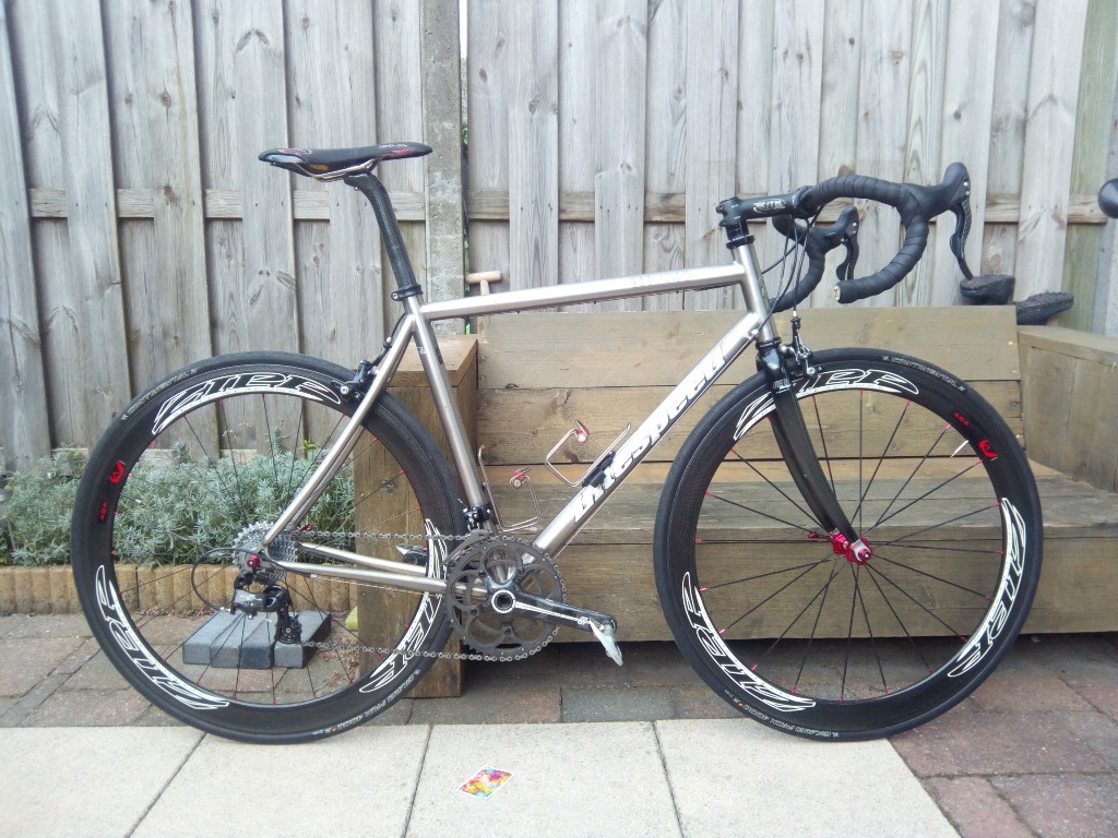 Nice zeg! Titanium en schijfremmen vind ik een mooie combi! Ik proef wat scepsis over de conti banden, waarom, deze worden toch algemeen beschouwd als zeer goed?