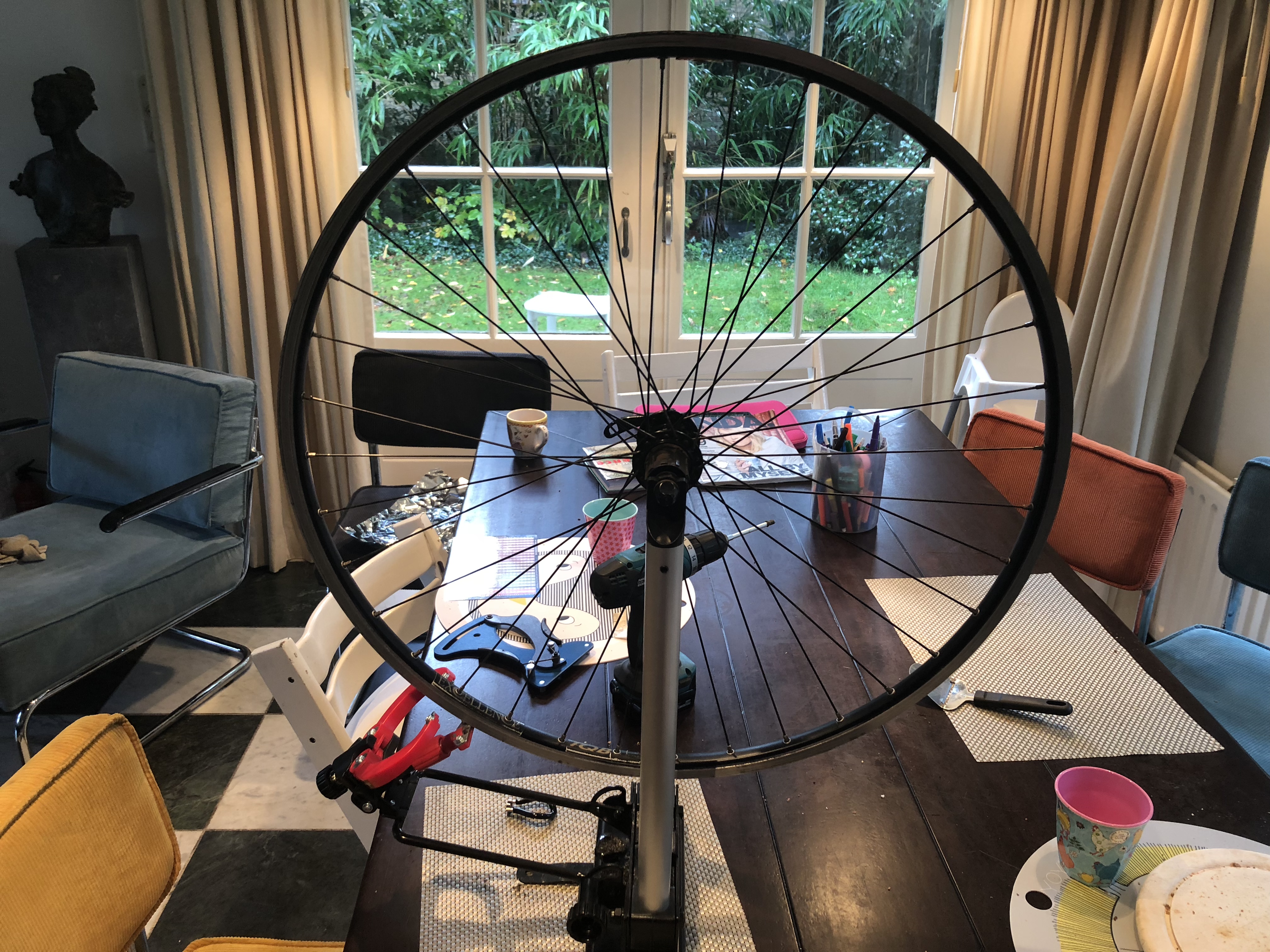 Voor nu is het wiel goed recht met minimale hoogteslag.
