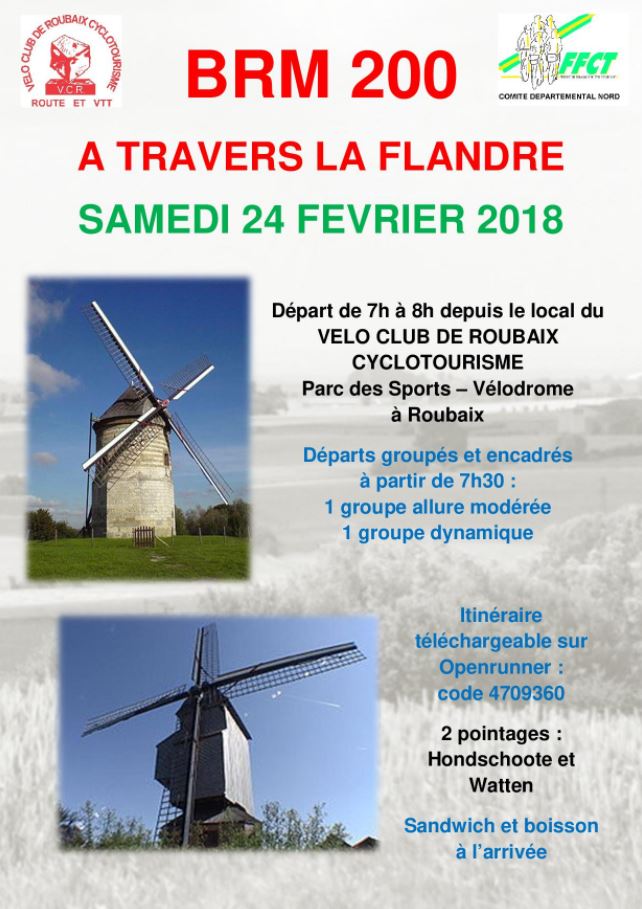 Ik zie dat onze vrienden in Roubaix in februari 2018 ook een brevet organiseren, dwars door Vlaanderen.