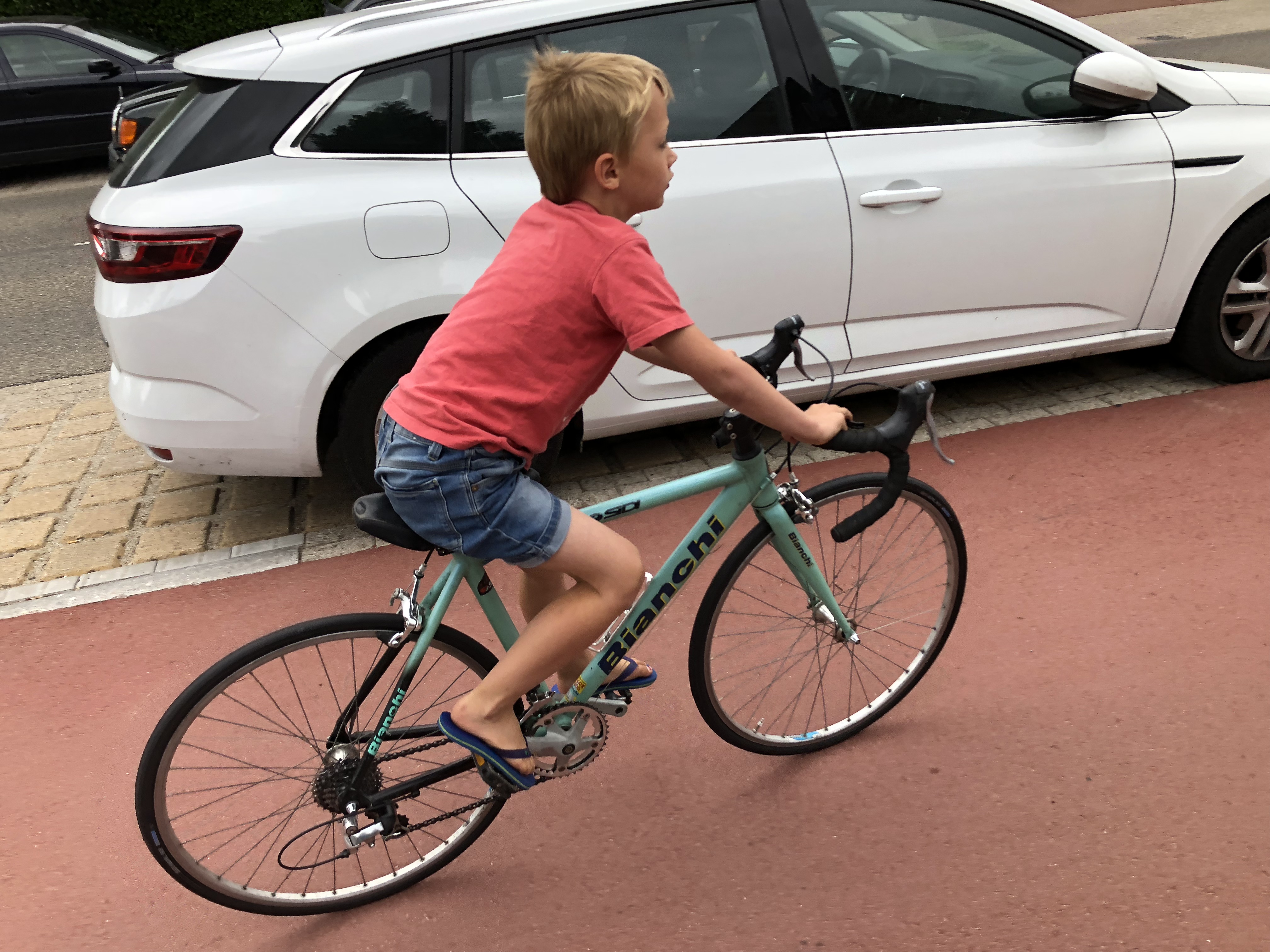 Voor diegene die geen zoon hebben die op 5 jarige leeftijd op mtb door de bossen gaan: de zoon die nu 16 is kon maar net fietsen op 5 jaar oud; nu hangt hij de coureur uit...