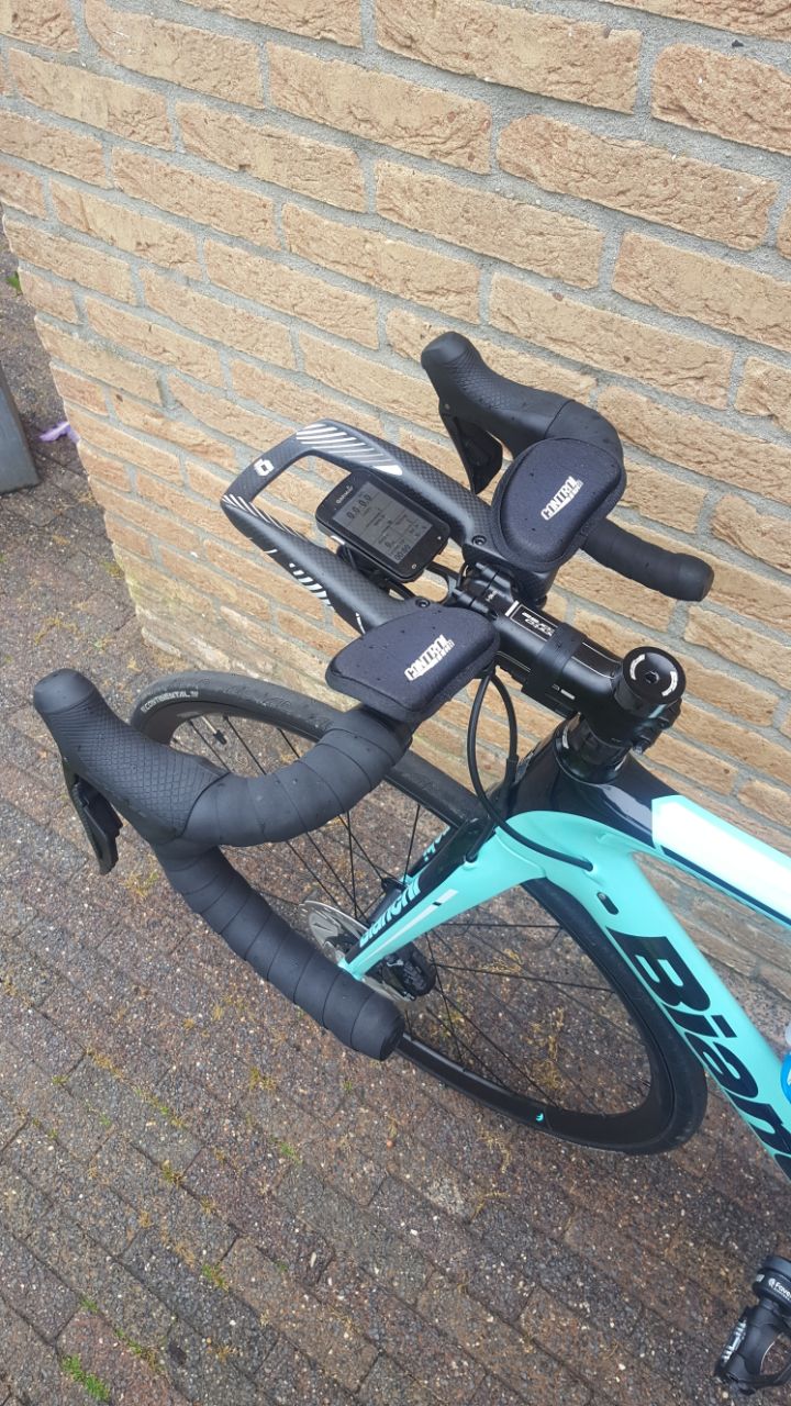 Vandaag ook mijn Controltech stuurtje binnengekregen voor op de Aria. Ik was met de andere fiets een lang stuurtje gewend, dus benieuwd of deze bevalt. Alleen nog een oplossing zoeken voor het probleem dat het stuurtje te smal is om de Garmin erin te kunnen draaien.