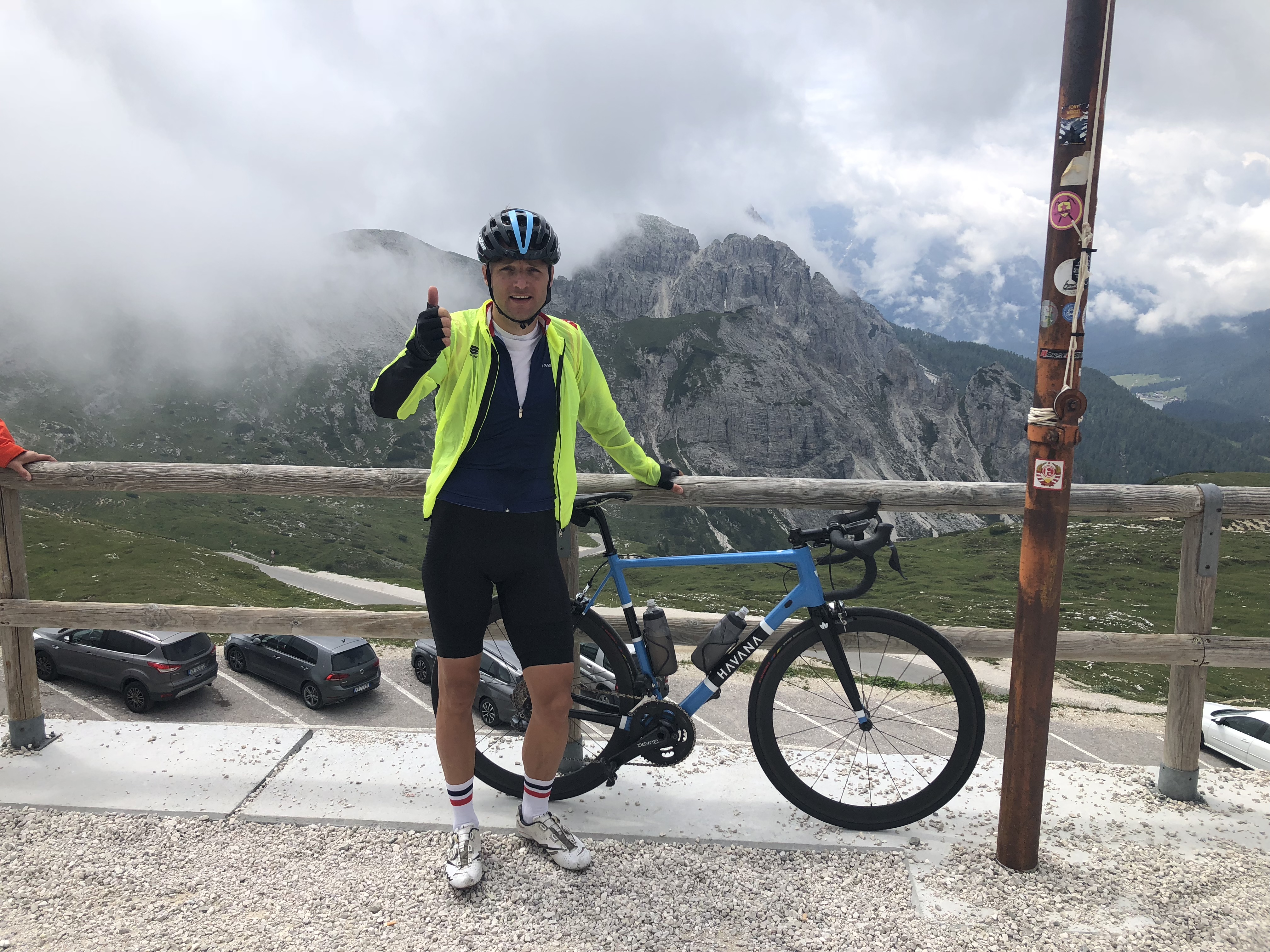 Met de auto naar Cortina d'Ampezzo gereden. Vanuit de daar op het gemakje de Tre Croci opgereden. Omlaag, linksaf en vervolgens de Tre Cime meegepakt. Steil kreng, gelukkig hadden we het profiel goed bestudeerd. Lekker omhoog gereden. Helaas was het weer niet super (wel droog) dus geen al te mooie foto's. Vervolgens weer terug naar Cortina. 53 km / 1450 hm.