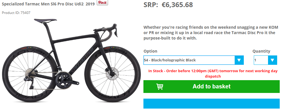Wel even wachten want nergens is de Tarmac Pro disc 54 te leveren op dit moment.