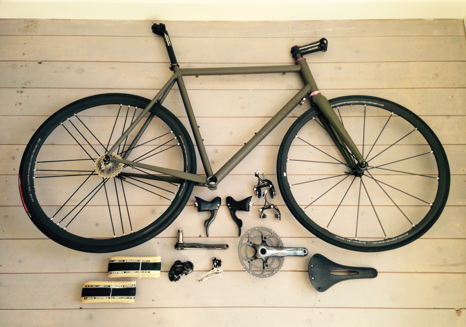 Ik heb nog niet alles compleet en twijfel nog over een paar onderdelen ( zoals, stuur- en zadelpen, waarschijnlijk vervangen voor Thomson).