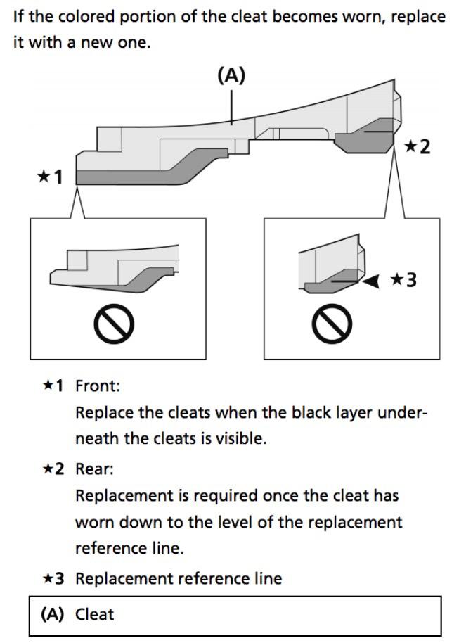 Of de blokjes versleten zijn zie je door de wearline (bijlage) Alhoewel ik nu al 2 maanden zonder de achterste gele blokken van mijn cleat rijd zonder problemen...