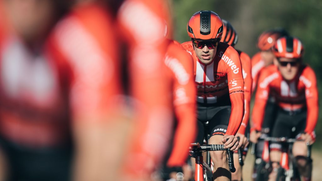 Sunweb nieuwe outfit 2019: overwegend rood en zwart.