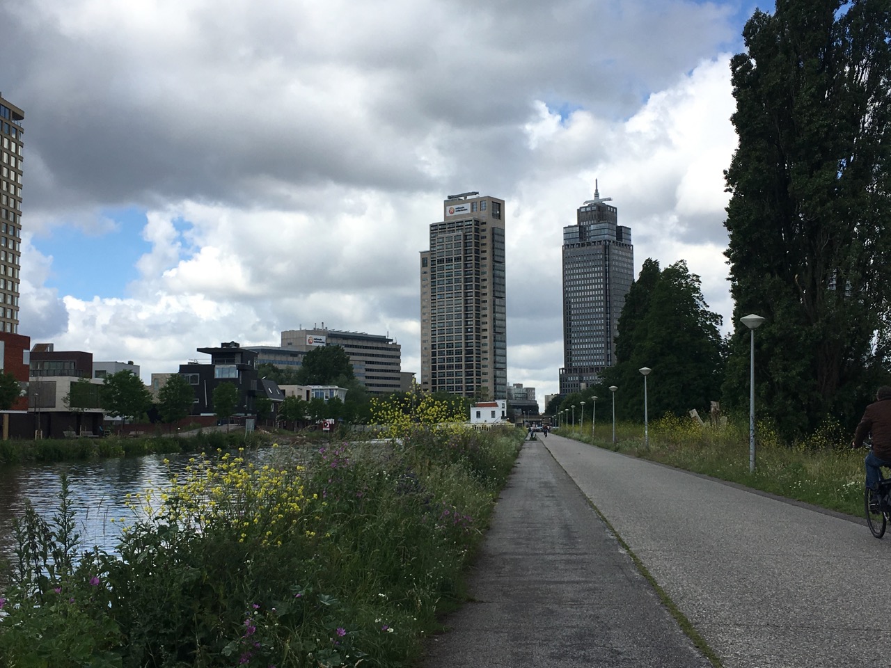 Daarna via Diemen naar Amsterdam Amstel waar ik langs het kanaal fiets en even wat in het zonnetje gegeten heb.