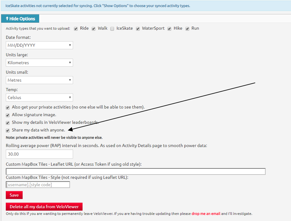 ik denk dat je account nog privé is op veloviewer. dat kan je open zetten, als je dat wil natuurlijk. bij de opties op de update pagina