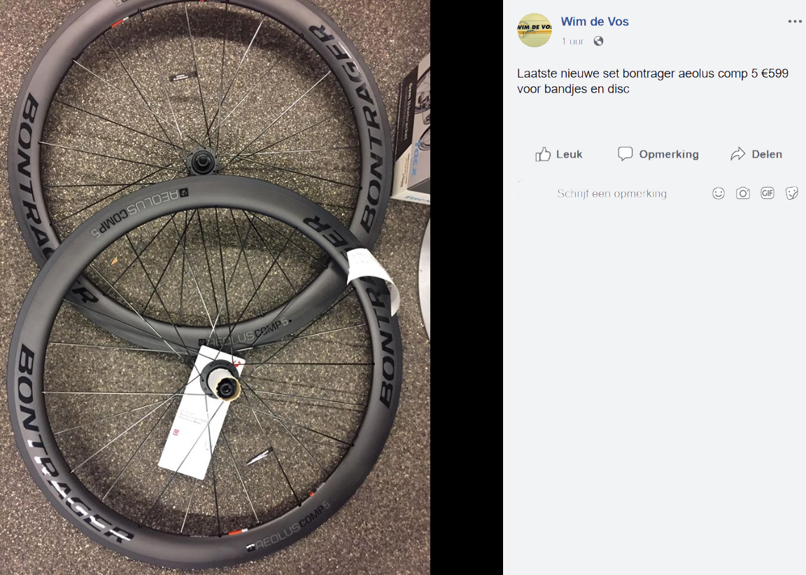 Een stel Bontrager Aeolus Comp 5 TLR disc wielen voor 599 Euro.