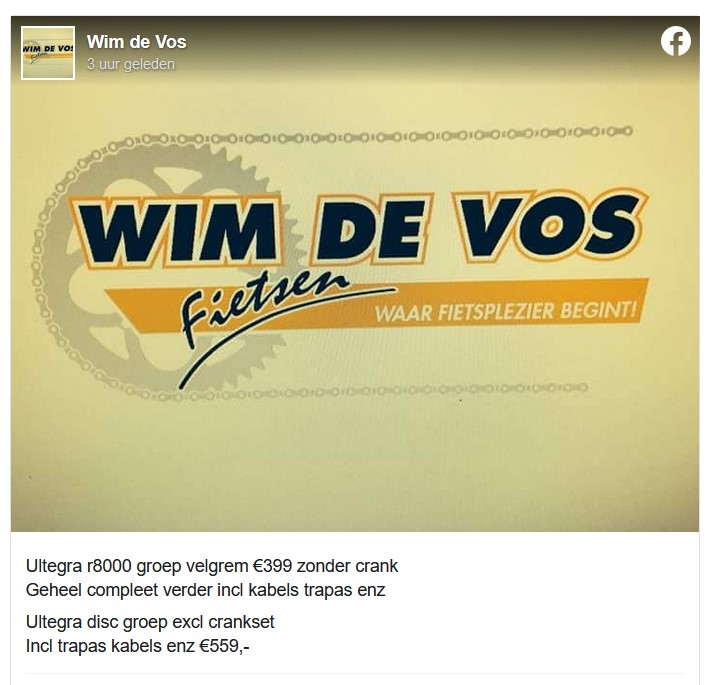 Op zoek naar een volledige Ultegra R8000 groepset (korte kooi, 172.5mm crank, bij voorkeur 52/36 anders 50/34)