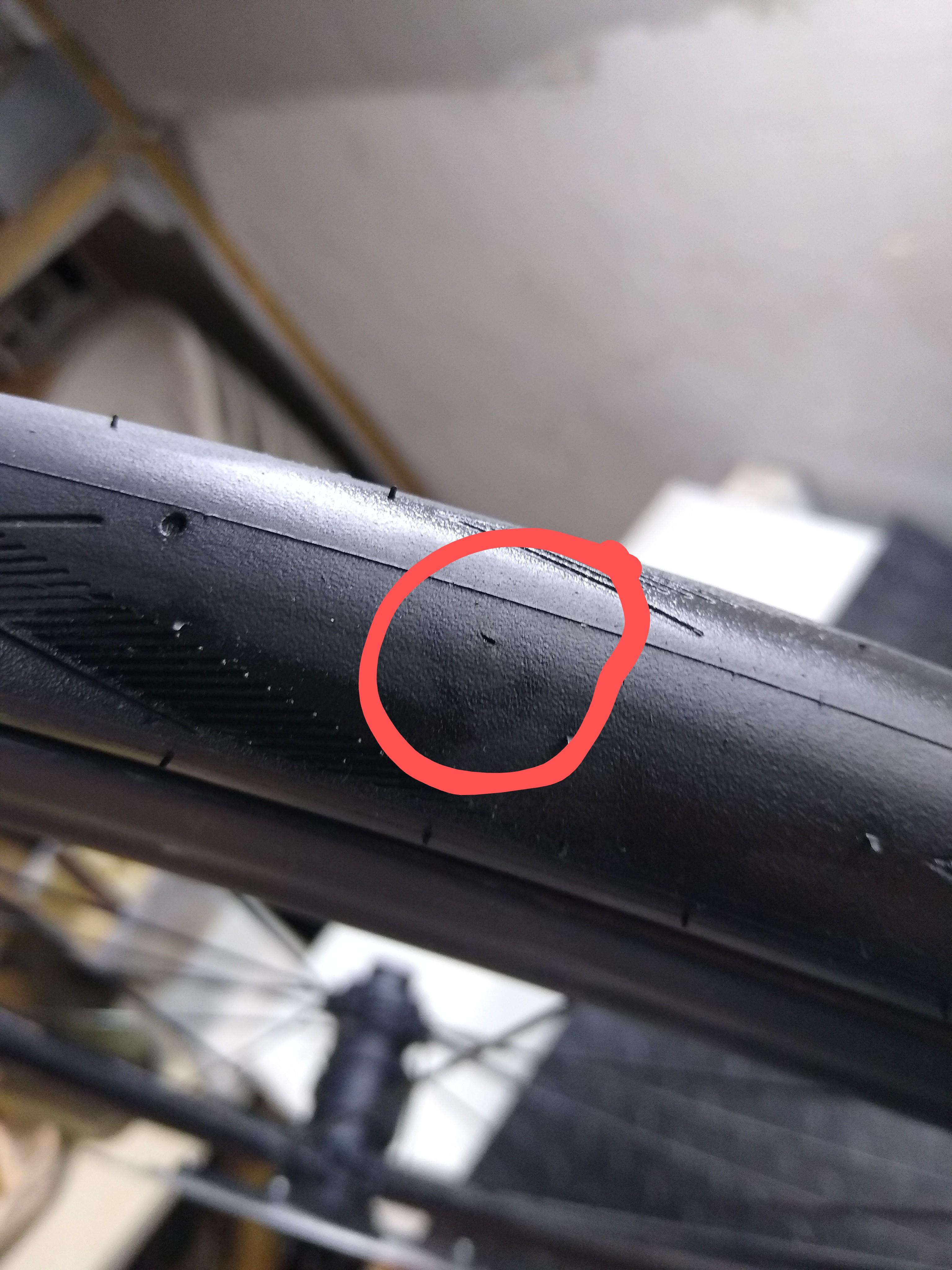 Het was echt geen groot gat, eerder klein sneetje, dus binnenband kon er niet uitsteken.