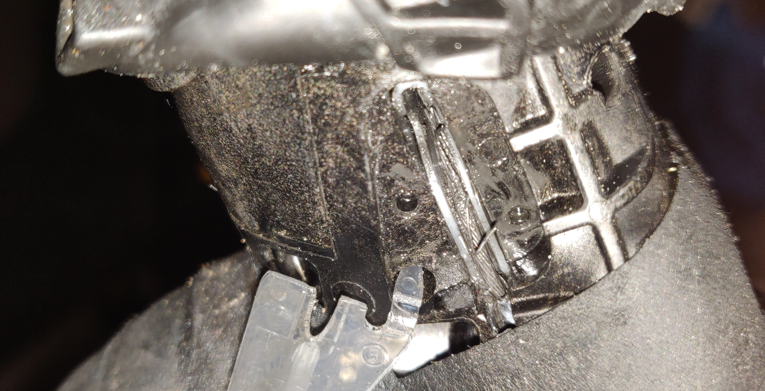 Je kan ook niet goed zien wat er allemaal gebeurd. Het kapje op de foto's hier boven laten de kabel pas zien na 3 cm, terwijl die van mij daarvoor al gebroken was. Daarvoor moet je een ander kapje (zie pagina 23 van https://si.shimano.com/pdfs/dm/DM-ST0002-05-DUT.pdf) weghalen. Omdat het toen weer vroor en ik al koude vingers had heb ik niet goed gekeken of er iets te zien is waardoor de kabel zo snel rafelt, maar ga dat van de zomer wel weer eens doen.