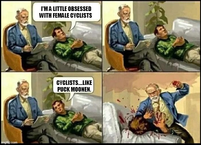 Ik zie, als ik naar dit topic kijk, toch vrijwel geen afgunst. Wel zie ik een groep mensen die het vermakelijk vinden dat iemand speciaal over dit meisje een topic voor sexy plaatjes is begonnen en amechtige pogingen deed om het vooral over die plaatjes te laten gaan en het niet over haar wielrencapaciteiten te hebben. Ik zie een groep mensen die eigenlijk geen idee hadden wie Puck Moonen is maar die haar door dit topic zijn gaan opmerken in de media en het wel over haar fietscapriolen willen hebben en het nimmer aflatende "gedoe" rond haar steeds vermakelijker vinden. Dus ja, als ze zichzelf dan weer eens overschat, of het laat afweten en de schuld bij anderen legt, of weer eens een interview geeft waaruit dat gebrek aan zelfreflectie weer blijkt, dan is het leuk dat er een fietscafé is met een topic helemaal speciaal over haar waarin we weer even kunnen grinniken om haar uitspraken, verbaasd kunnen zijn over haar verwachtingen, plaatsvervangende schaamte kunnen bij haar fitties en kunnen lachen om haar fans.