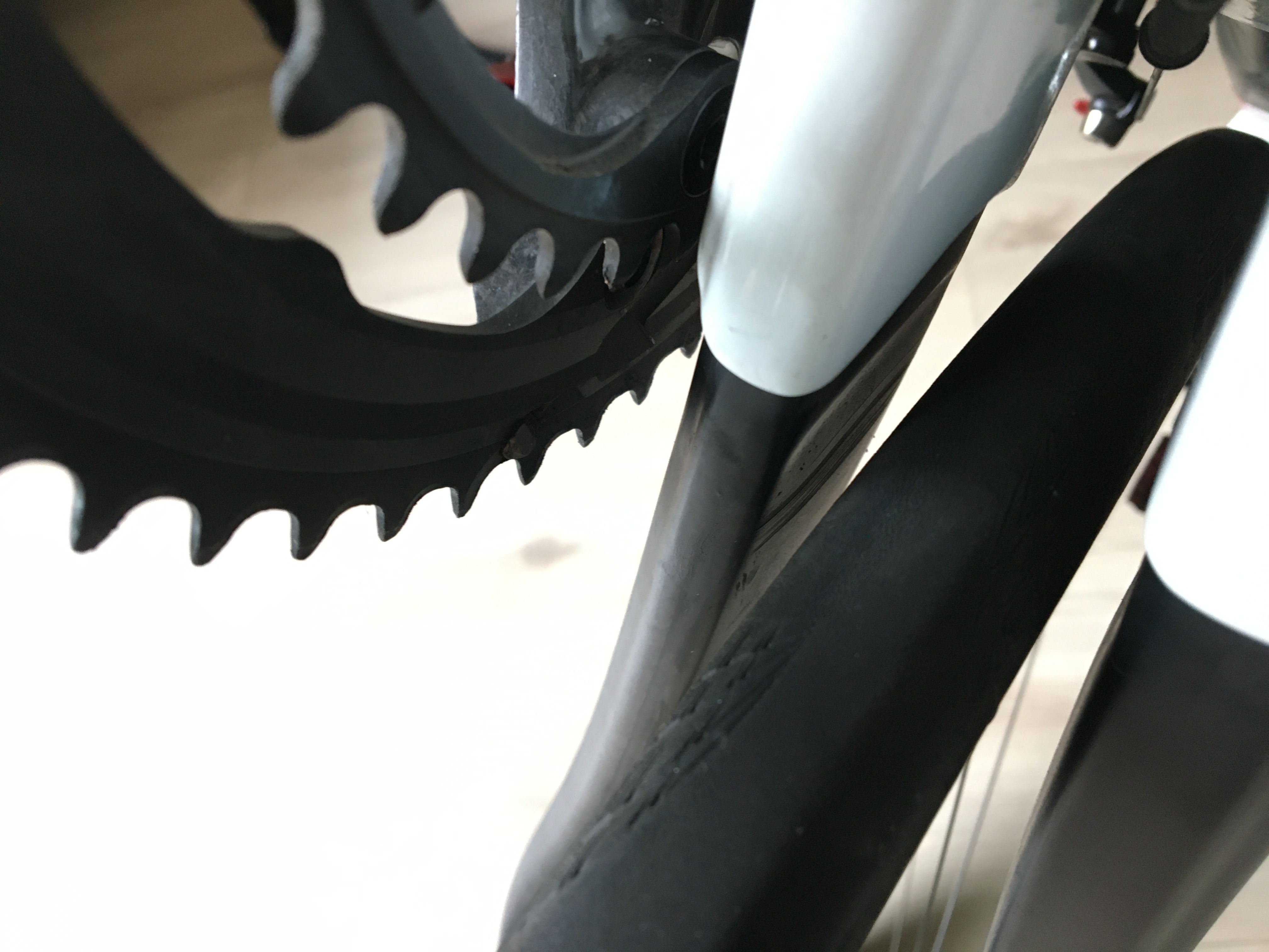 Vanmiddag was ik een ritje aan het maken op mijn C64! Het was in eerste instantie een mooie rit want vandaag haalde ik de 10.000km dit jaar! Helaas heb ik onderweg schade gereden…een spijker is in mijn band gekomen en heeft de binnenkant van mijn frame hierbij beschadigd. Dit is ook te zien op de foto’s. Is zoiets plaatselijk te herstellen of moet een frame dan helemaal opnieuw worden gespoten? Indien plaatselijk herstel mogelijk: zijn er goede carbon reparateurs in de omgeving Breda? Ik hoor het graag!