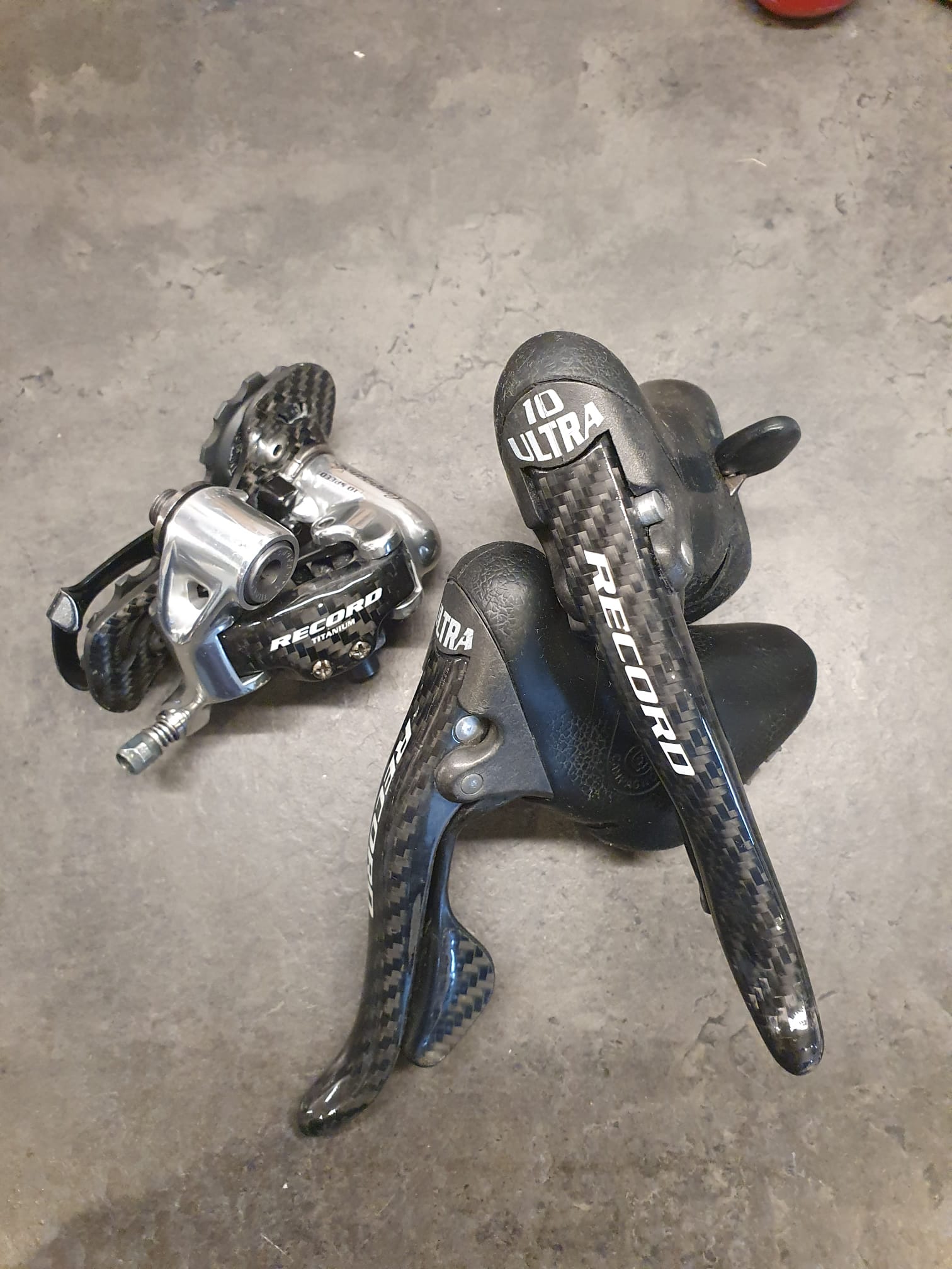 Vandaag en leuk klusje. Het herlakken van een setje oude record 10 speed remhendels en het derailleur plaatje ( ik heb nog altijd geen voorderailleur!), ze waren op zich in goede conditie op kleine plekjes na. Grootste deel alleen heel even met korrel 600 opgeschuurd. De plekjes met wat meer aandacht gladder gemaakt.