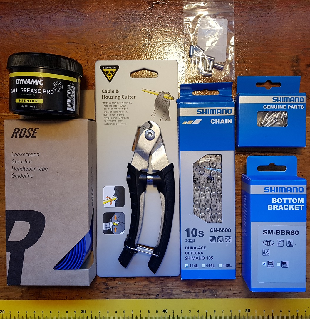 Een zwik spulletjes om het nieuwe frame binnenkort op te bouwen: