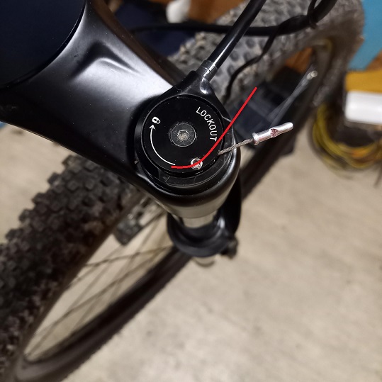 Ik wil de kabel van de remote lock-out van mijn rockshox judy silver TK vervangen, maar heb moeilijkheden om de kabel vast te maken met het minuscule vijsje.