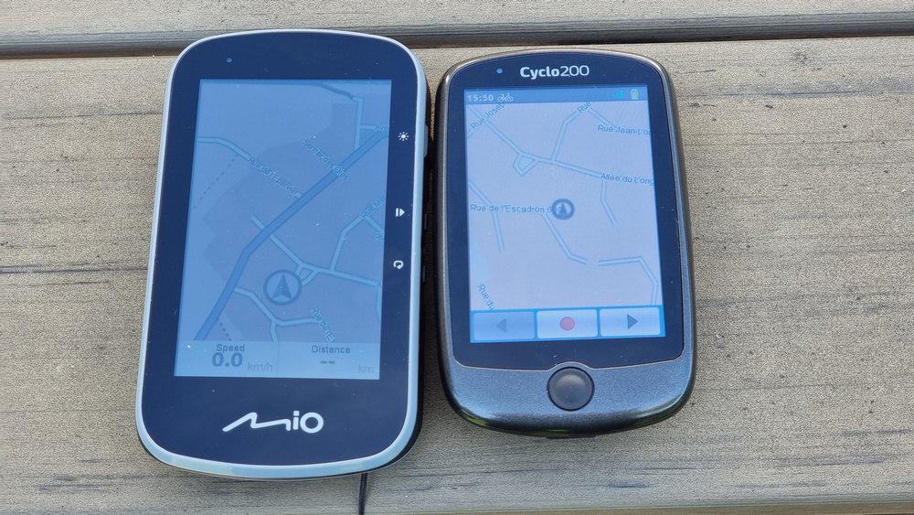 Ook heb ik nog mijn oude MIO Cyclo 200, waarvan het scherm veel helderder is en wel veel beter zichtbaar.