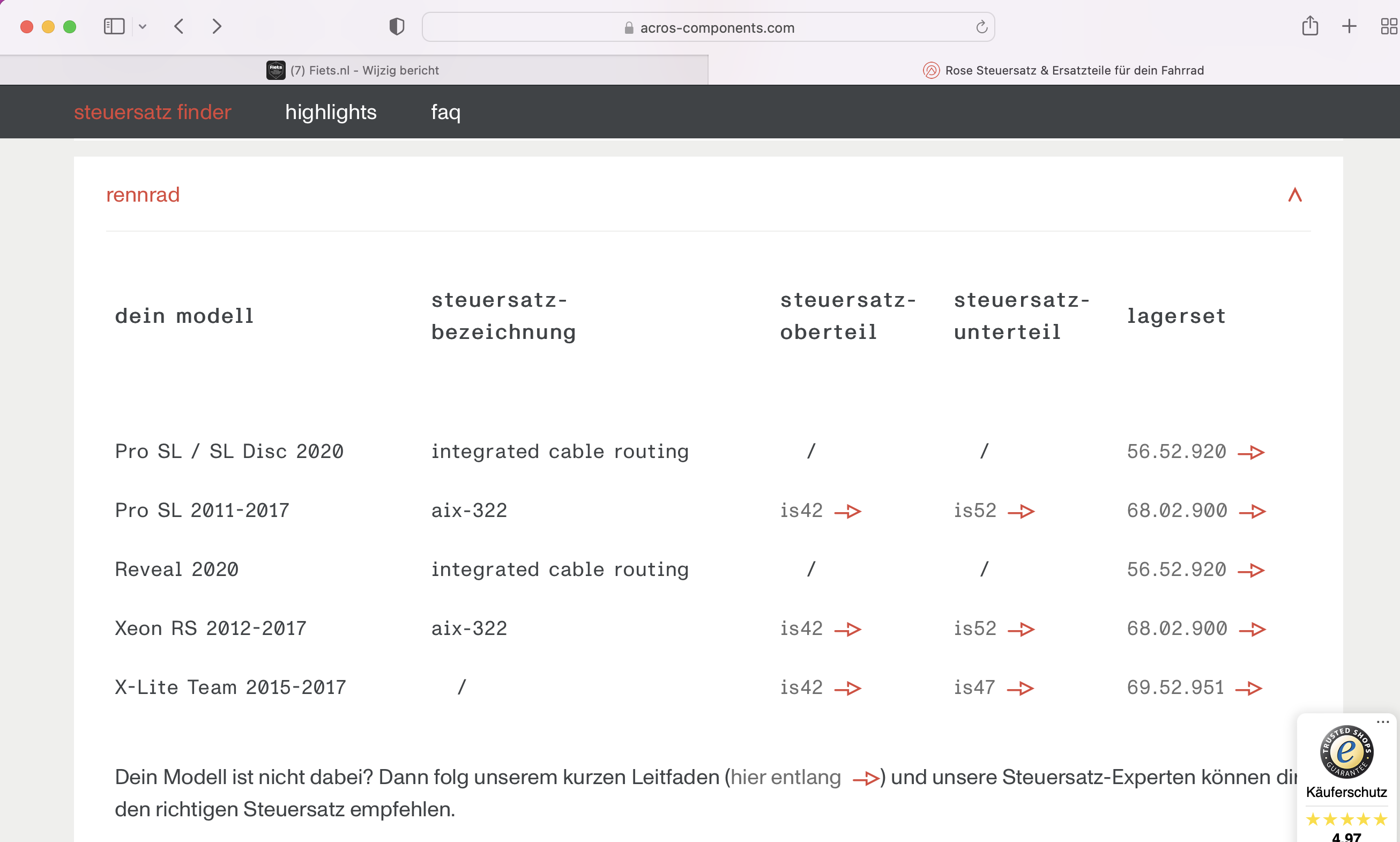 Ik ben in het bezit van een Rose Xeon Team CGF 3000 en wil mijn balhoofdlagers vervangen. Die upper bearing denk ik te hebben gevonden, maar de bij de lower bearing gaat er iets fout. Als ik de maten die ik opmeet probeer op te zoeken lijkt er maar geen lager ervoor beschikbaar te zijn.