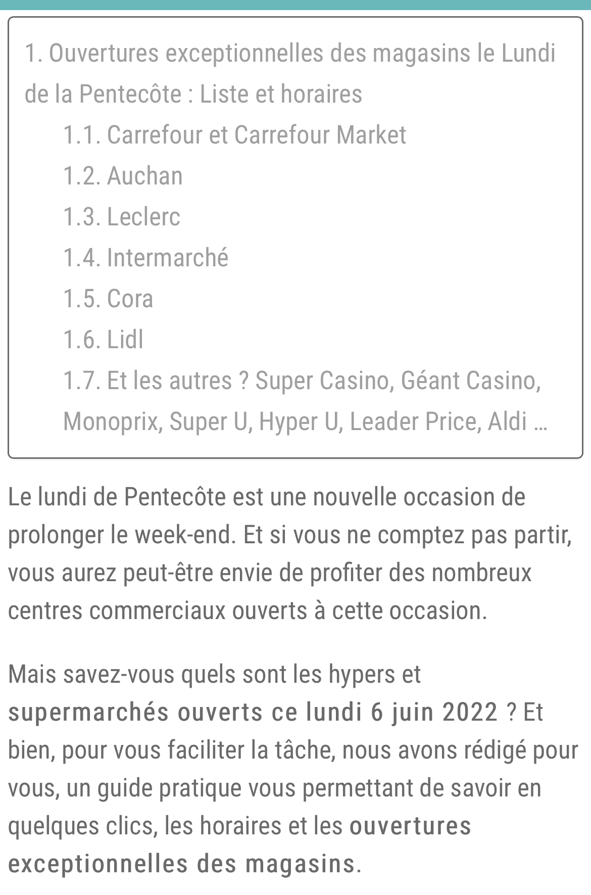 Dat wil nog steeds niet zeggen of deze winkels open zijn omdat er via deze pagina gelinkt wordt naar de diverse supermarkten en dan moet je zelf uitzoeken of de winkel in jouw district open is.! Maar enfin, niet getreurd, de meeste grote supermarkten zijn op "Lundi Pentecôte" gewoon open van 8h30 - 19h00.