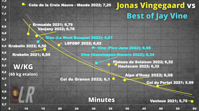 (Remco vergeleken met zichzelf, Jay Vine vergeleken met Vingegaard)