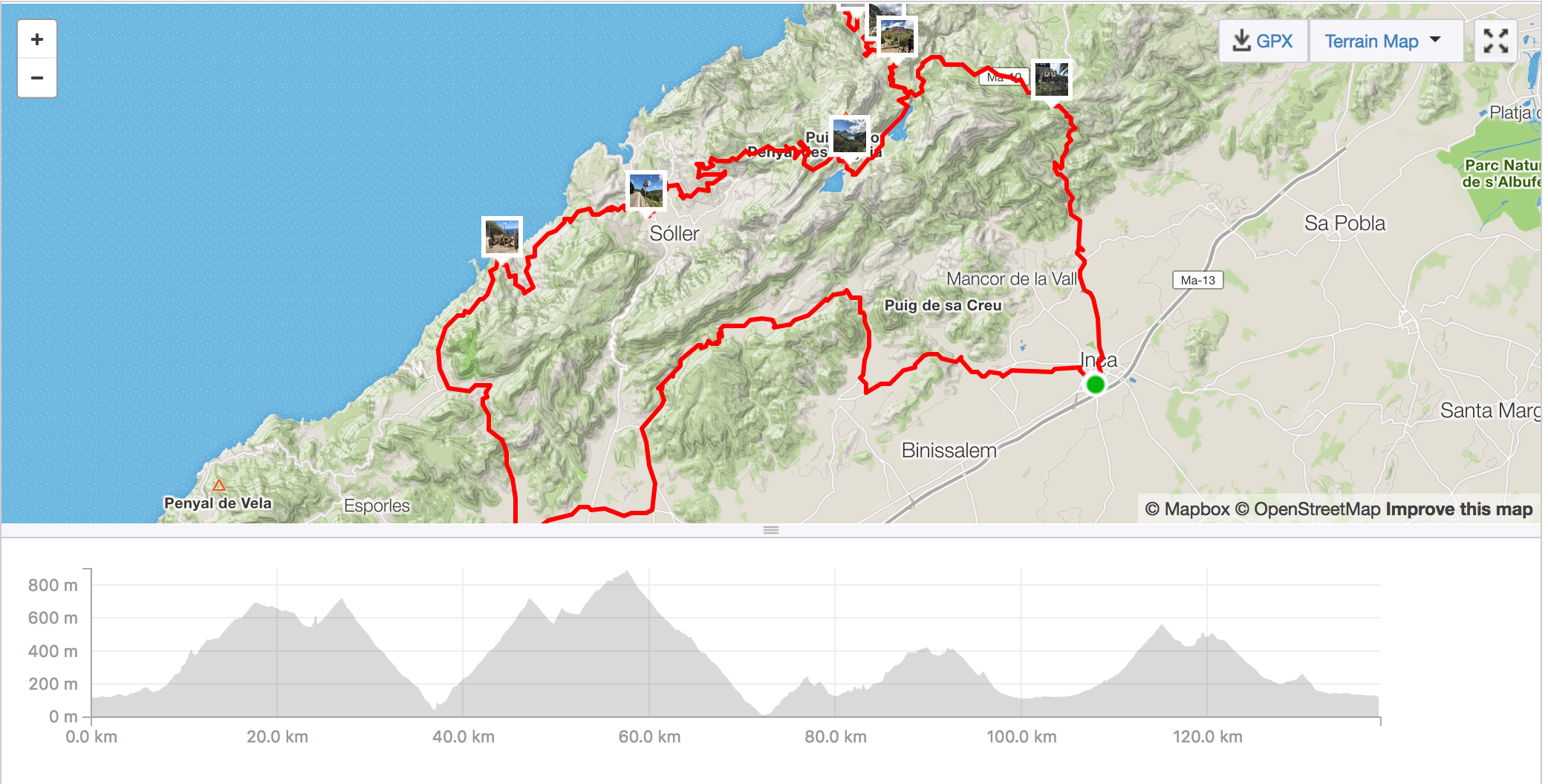 Nu ga ik zelf half februari een paar dagen fietsen op Mallorca. Ik heb de routes al uitgezet via Komoot. Daar kun je ook al veel info vinden over de omgeving qua stijging, ondergrond etc.