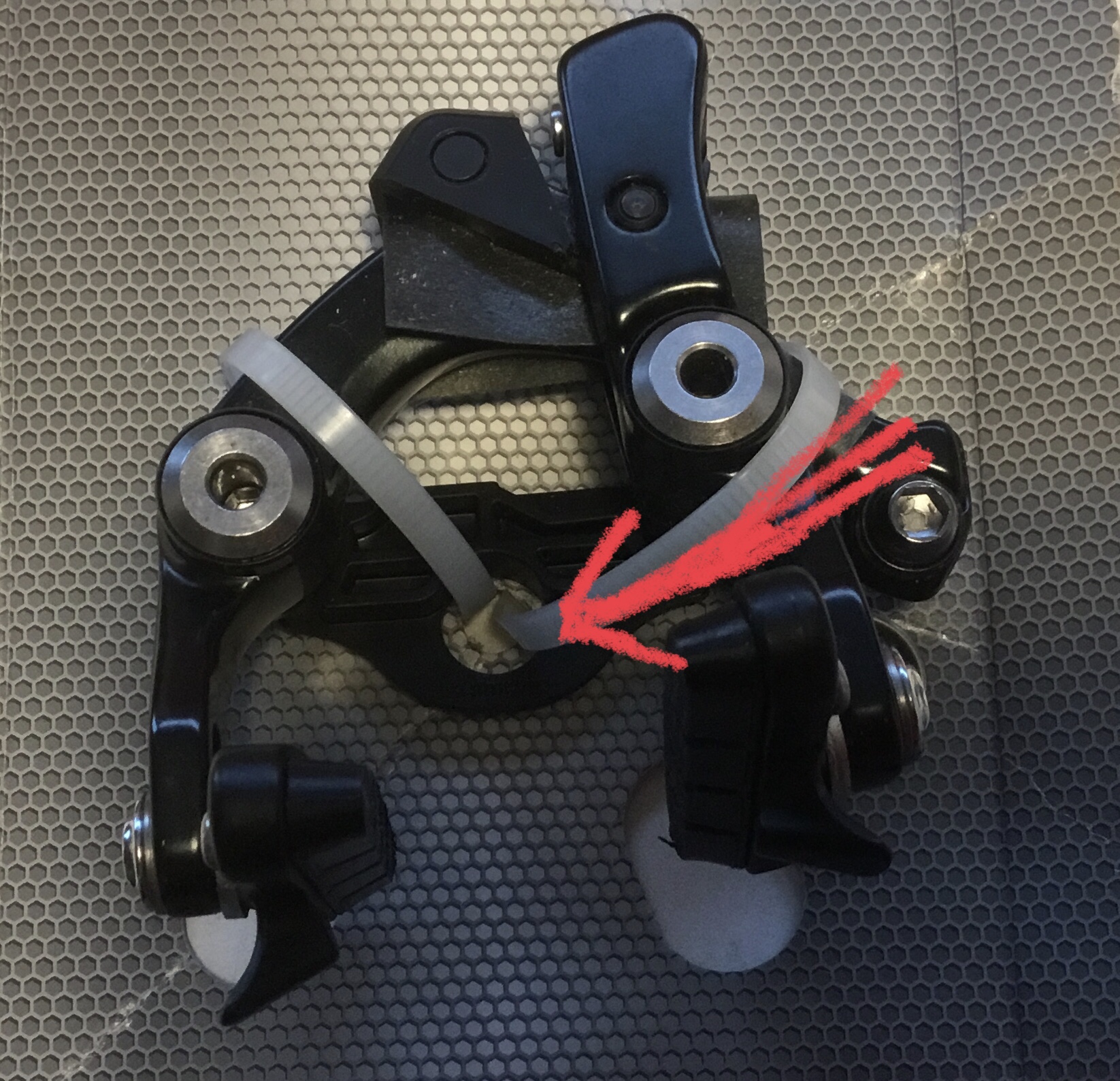 Een Shimano directmount rem heeft in de verpakking een hulpplaatje voor verpakking en montage. Op de fiets gaat hij niet mee.