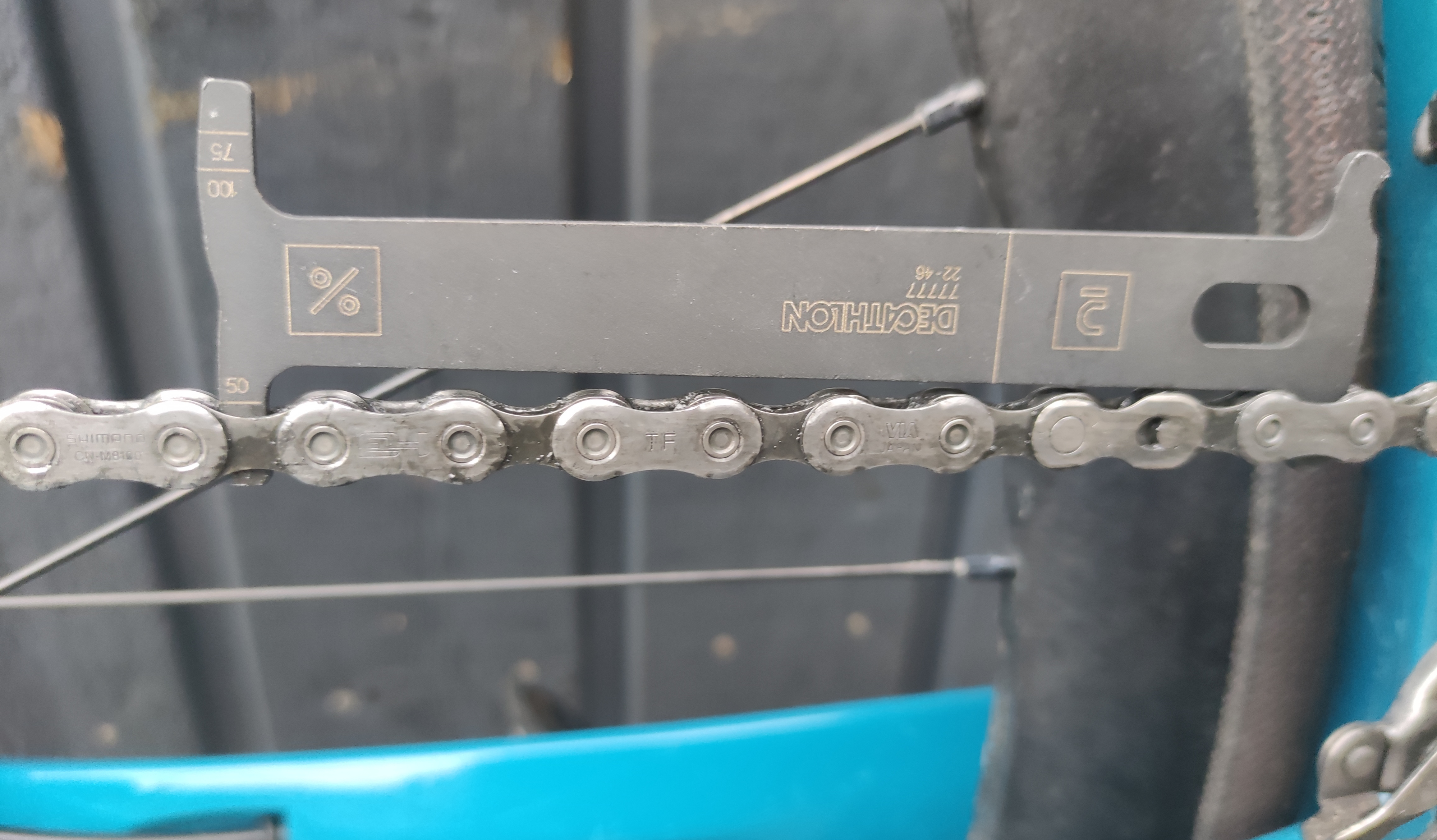 Op mijn racefiets heb ik een 12speed ketting liggen. In de afgelopen maanden (en nogal wisselende omstandigheden) heb ik +-2.750km gefietst. Met de slijtagemeter probeer ik de slijtage in de gaten in te houden, zodat ik de ketting tijdig vervang.