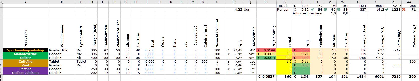 Zoals je ziet is op deze manier van voeden ook nog eens spotgoedkoop in vergelijking met voeden dmv reepjes en gelletjes.