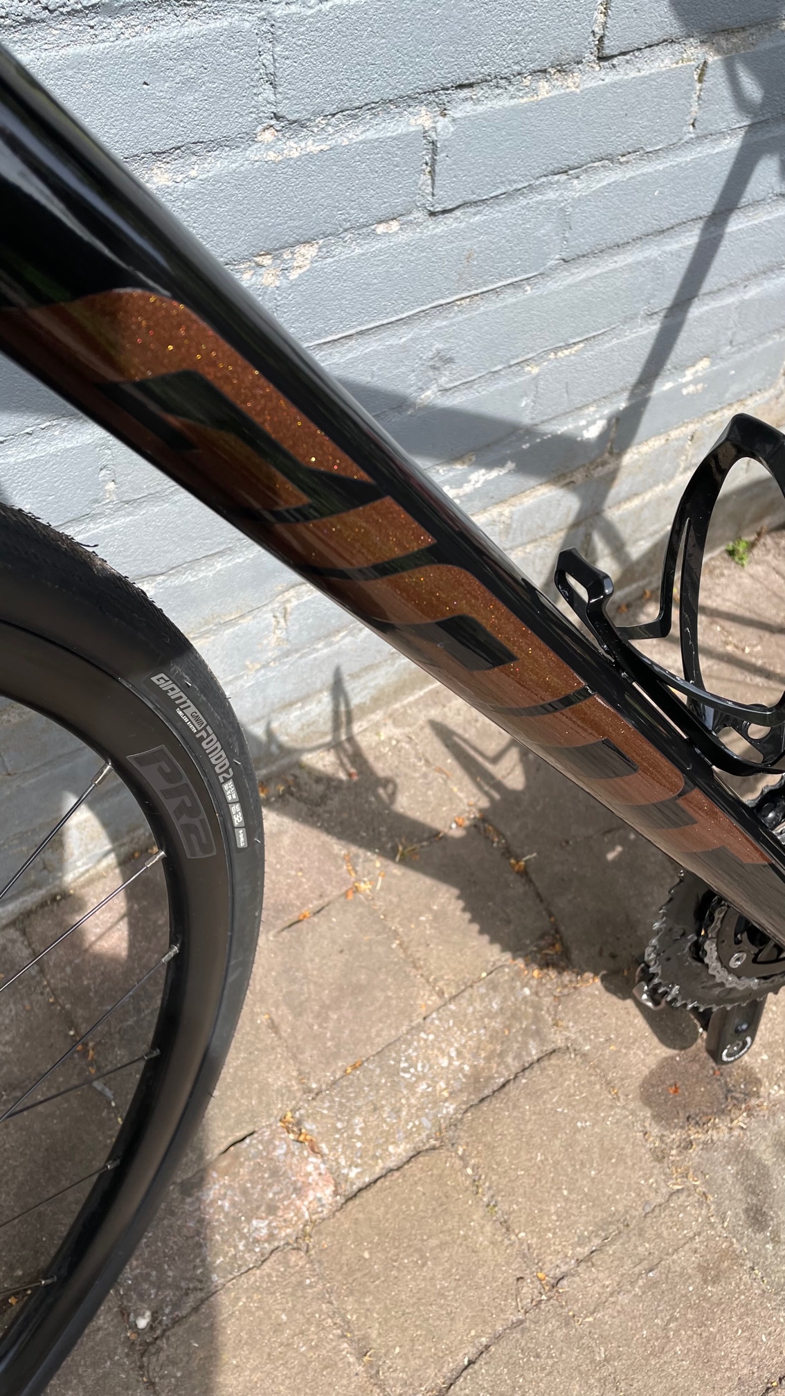 Heb je speciaal een sticker laten maken of heb een ander trucje gebruikt dat je kunt delen? Ik speel namelijk ook wel eens met het idee iets te doen met de grote letters TREK op mijn zilveren frame.