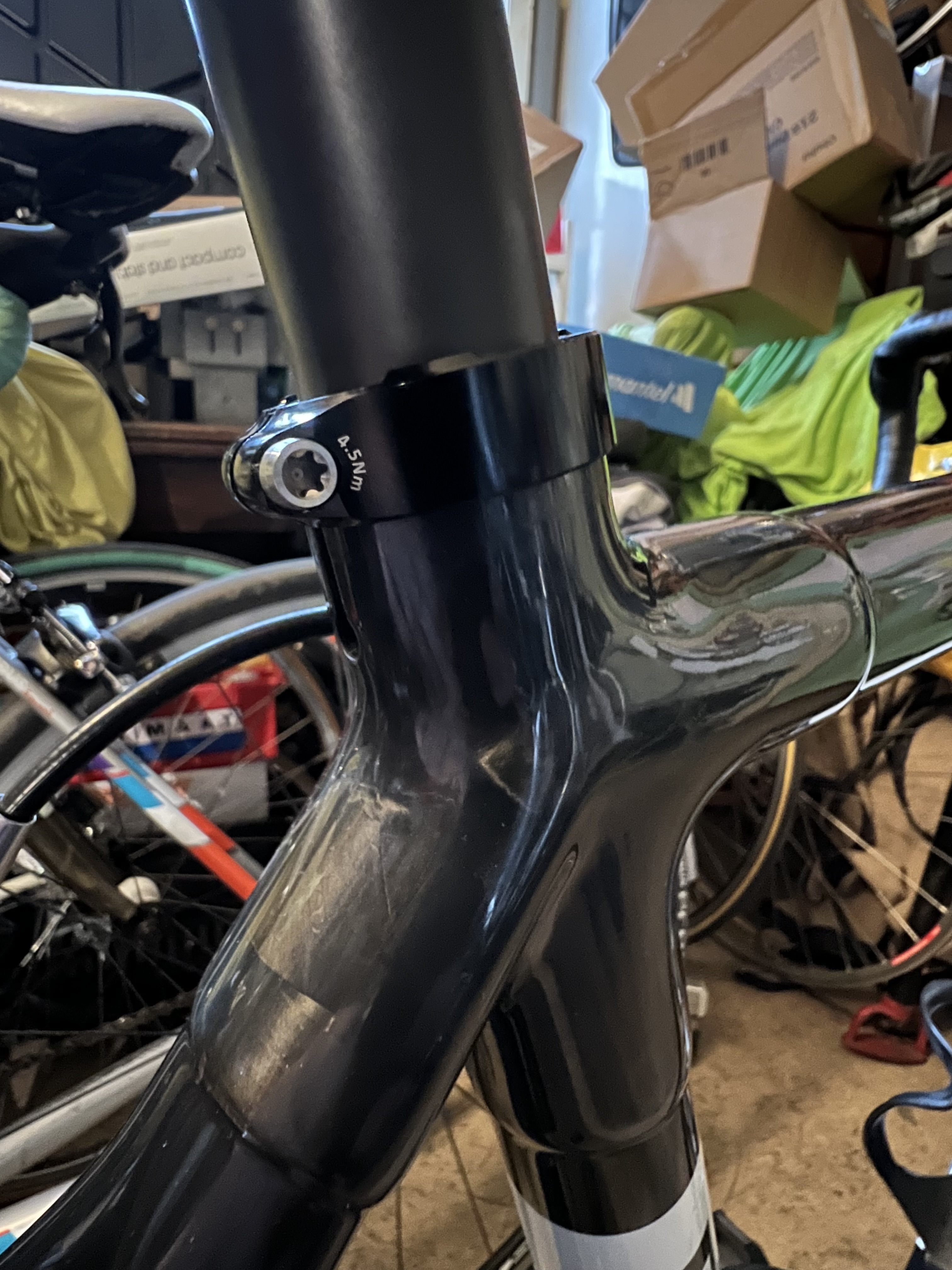 Eerste van drie alternatieve zadelpenklemmen voor de Z4 kwam vandaag binnen en dit was op papier al de mooiste. Gelijk maar even gemonteerd. Eentje hou ik in reserve en de minst mooie gaat retour. Originele 28,3 mm klemmen voor de Parlee Z4 zijn niet meer te koop. Niet bij Bespoke en ook niet bij Parlee begreep ik vandaag.
