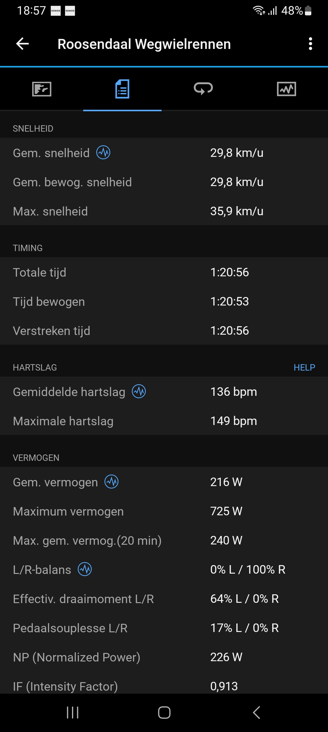 Even een correctie gem hartslag is 136 en gem vermogen 216