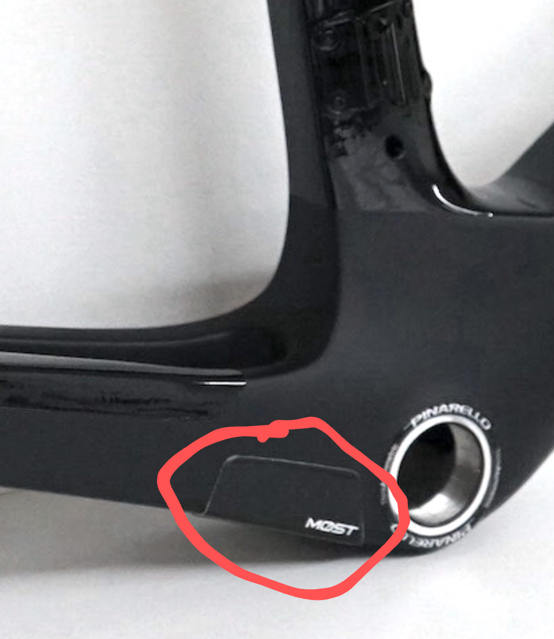 Ik ontdek vandaag dat dit plaatje van het frame gevallen is. Vreemd, nooit eerder meegemaakt met andere fietsen. Dan is het toch jammer dat zo'n duur frame wel zoiets overkomt. Morgen maar eens horen wat de dealer zegt, lijkt geen lastige reparatie maar zul je net zien dat dit iets unieks is en het frame terug moet naar de fabriek.