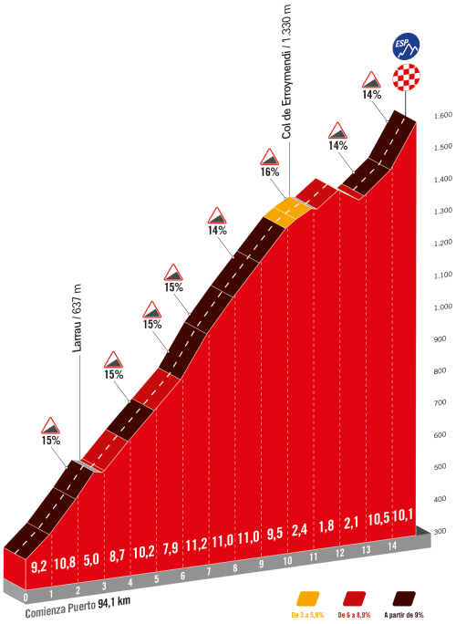 Ik kijk dan toch stiekem ook even naar etappe 14. De Larrau (15 km, gem. 8%) vond ik zelf (in 2005) al een verschrikkelijk smerige klim, nu ben ik geen prof, maar er zullen er veel zijn die net als ik die klim zullen vervloeken. Met de top op nog geen 50 km van de finish zou het me niet verbazen als een klassementsrenner met ambitie daar amok gaat maken.daniel1975 schreef: ↑04 sep 2023 12:01Dit dus.