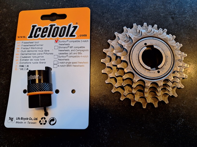 Freewheelafnemer van IceToolz. Voor ouderwets 2-noks Suntourfreewheel.