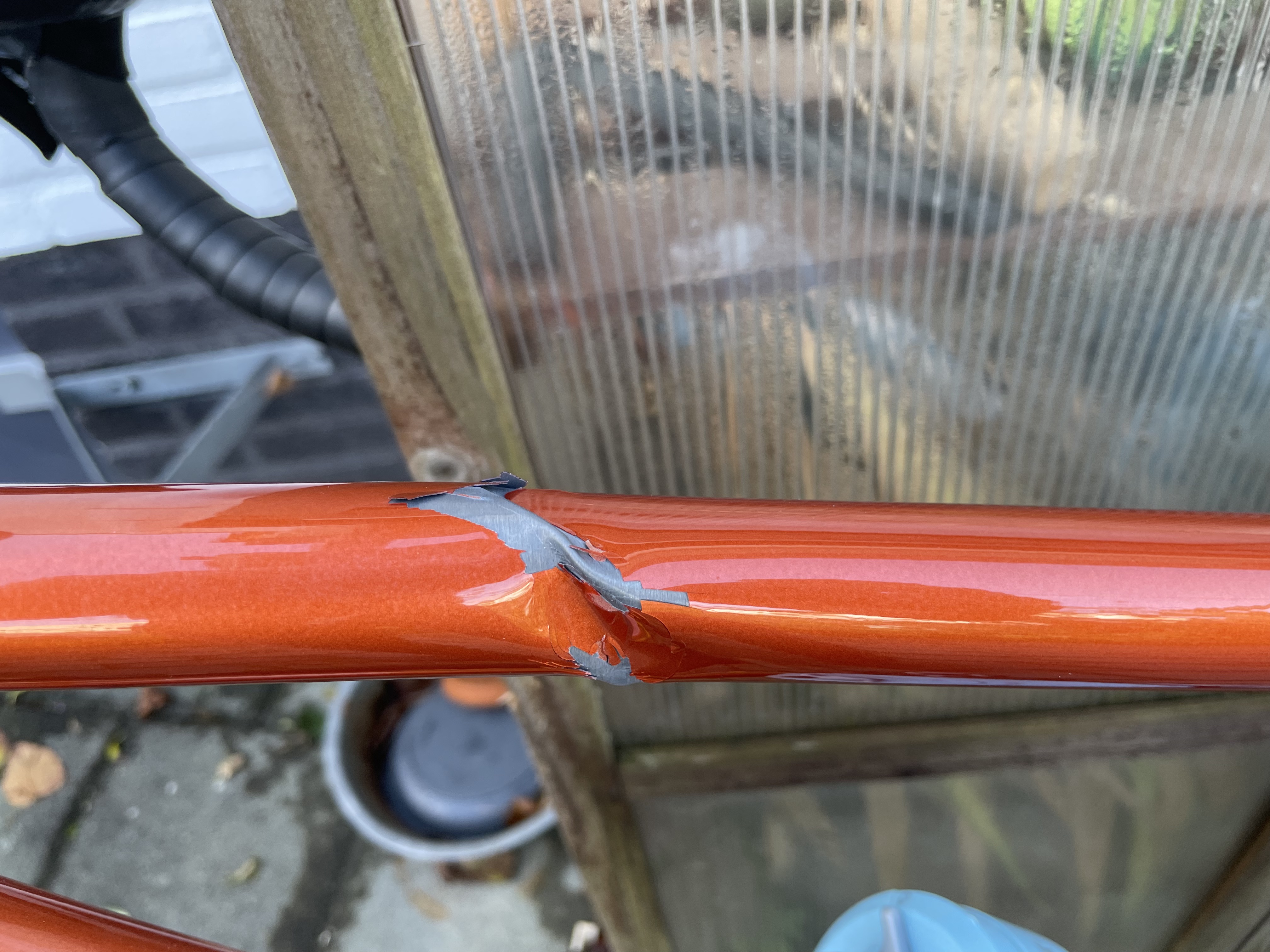 Als je waarde hecht aan het frame, zou je altijd eens bij een framebouwer kunnen informeren of het te repareren valt. Doorgaans kan er wel een nieuwe buis ingelast/gesoldeerd worden.