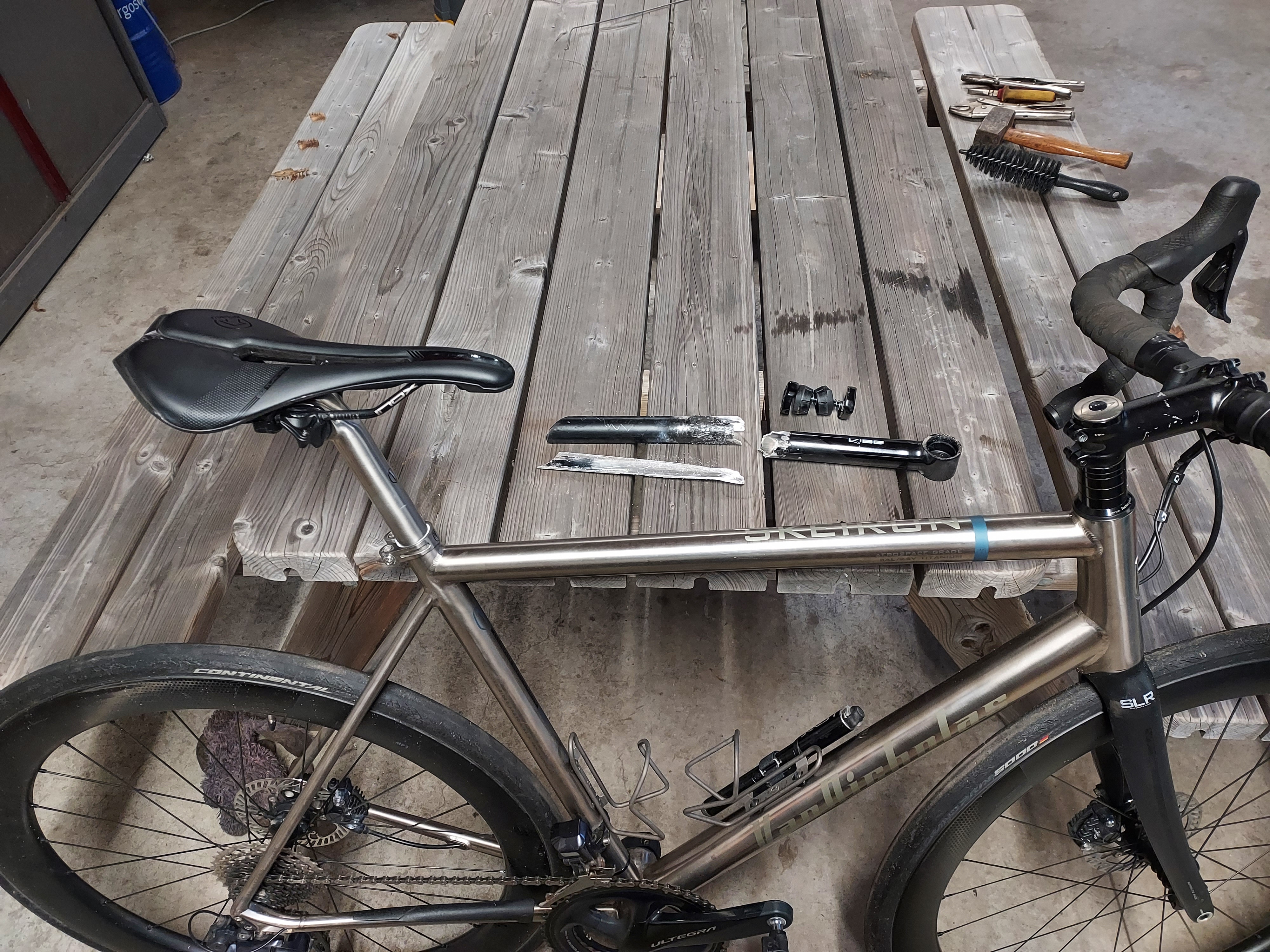 Ik kwam er afgelopen weekend achter dat mijn aluminium zadelpen muurvast zit in mijn titanium frame.