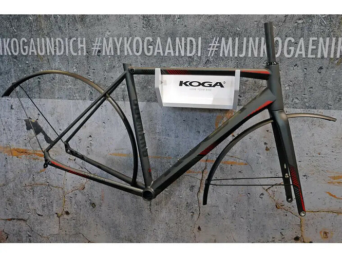 Koga maakt echt onbegrijpelijke keuzes. Daar zitten echt een stel saaie droogkloten aan de knoppen. Deze fiets had meer clearance en mooi weggewerkte montagepunten moeten hebben. En ja dat kan makkelijk!